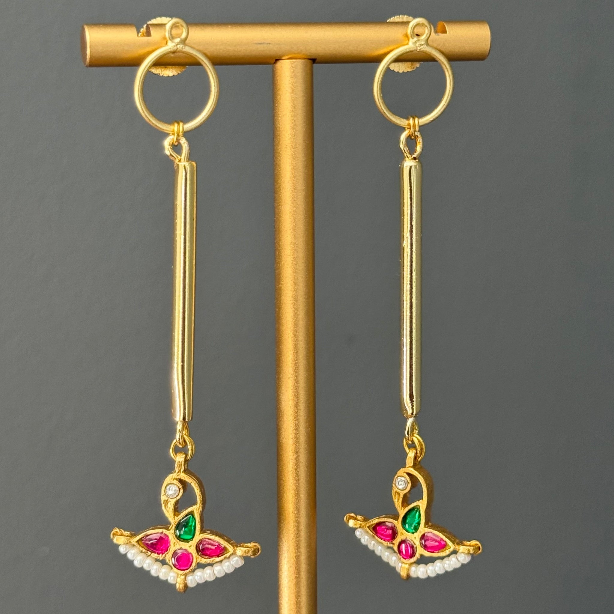 Lightweight yet impactful, these earrings are ideal for high-society gatherings, cocktail parties, weddings, festive celebrations, and formal evenings. The elongated stick design flatters the neckline while adding movement and sophistication, making them a versatile choice for both Indian fusion and contemporary Western wear.