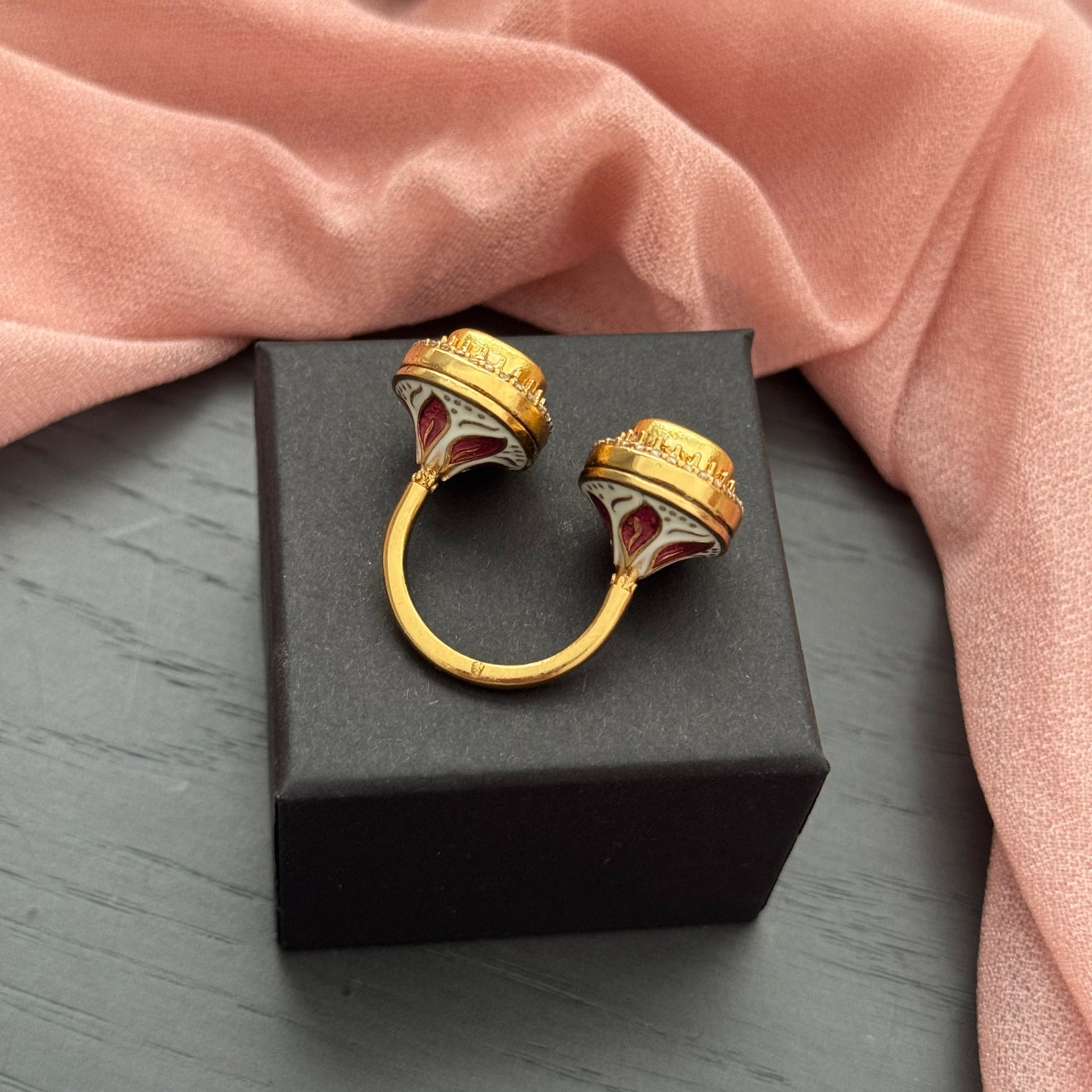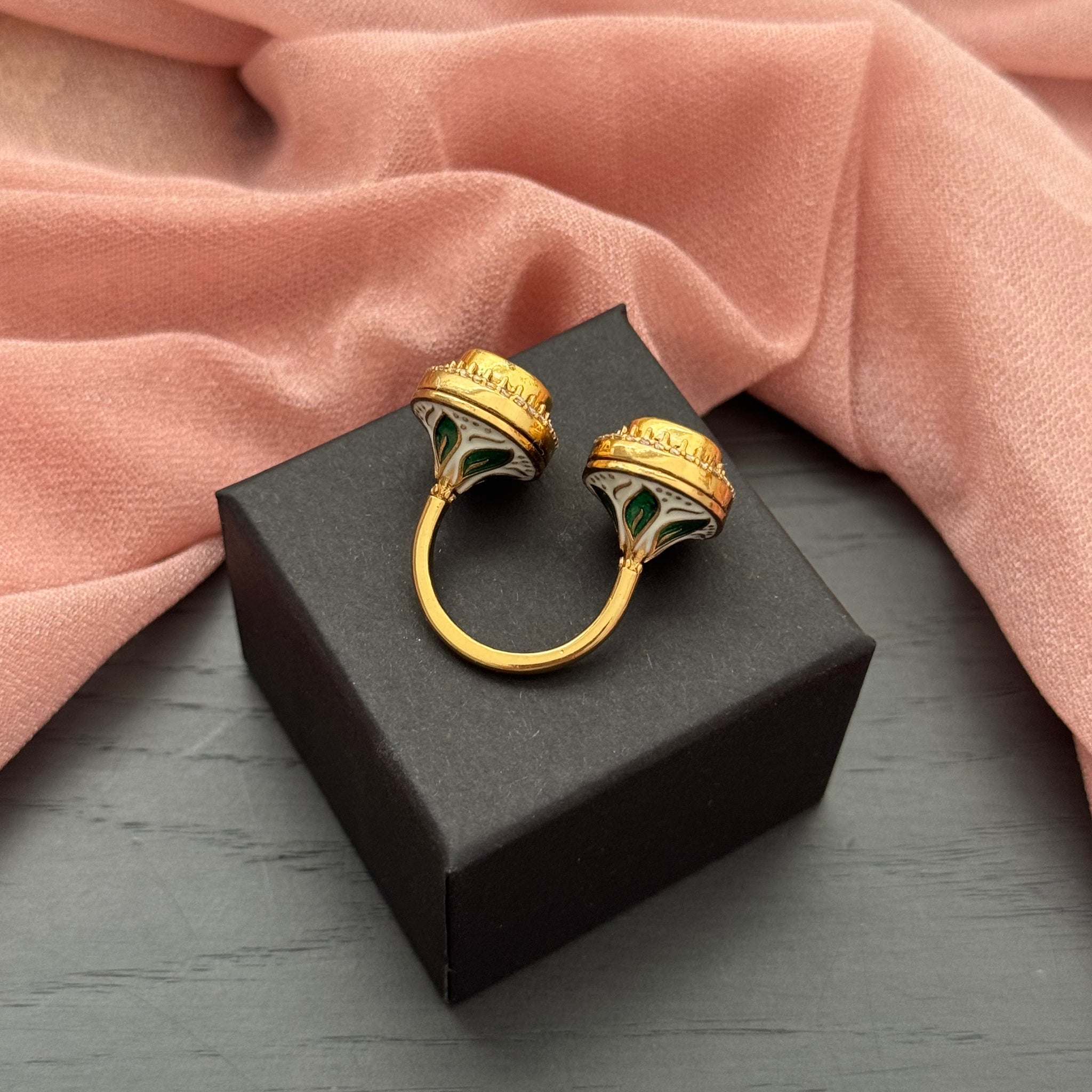 Twin Polki Kundan Meenakari Ring