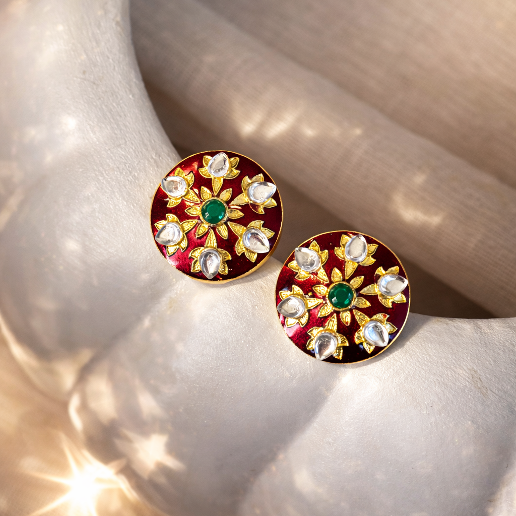 This sophisticated item showcases intricate kundan and enamel work, inspired by the sun rays.