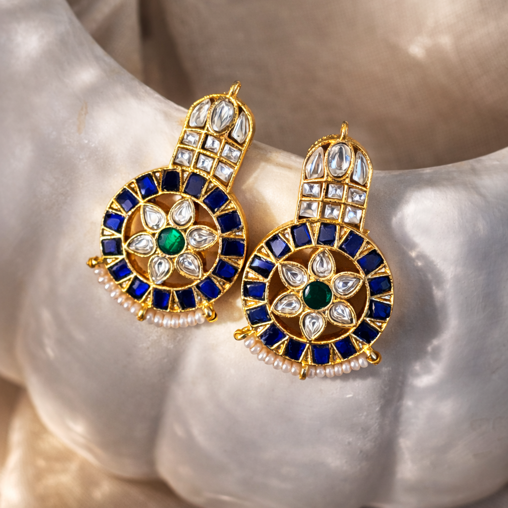 This sophisticated item showcases intricate jadau kundan work, inspired by delicate florals.