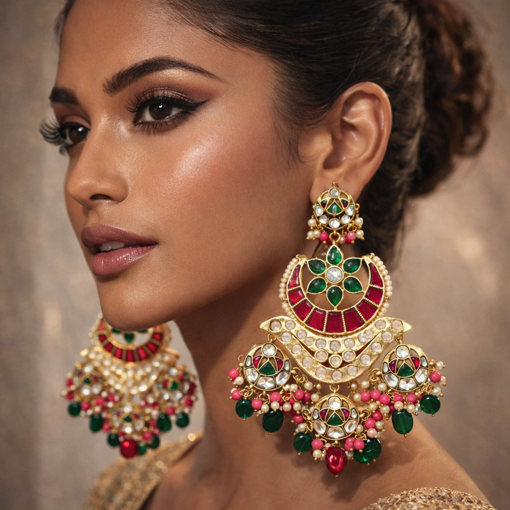 Handcrafted with intricate kundan and gemstone bead detailing, these traditional earrings are a true statement piece.